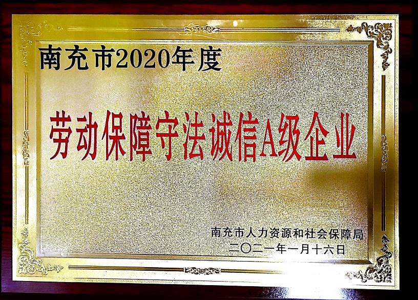 南充市2020年度勞動(dòng)保障守法誠(chéng)信A級(jí)企業(yè)